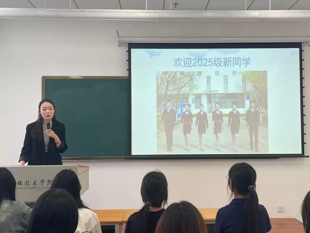 牛冬杰老师围绕民航业高质量发展需求,阐述了专业“服务礼仪+专业技能+应急能力”的培养体系。她详解了民航客舱服务与管理、民航机场地面服务等核心课程,民航客舱设备操作与管理、航空应急医疗等实操课程,以及民用航空服务礼仪、民航英语等素养课程的教学重点,结合航空公司岗位需求,让新生明确了“蓝天事业”的专业标准与成长路径。
