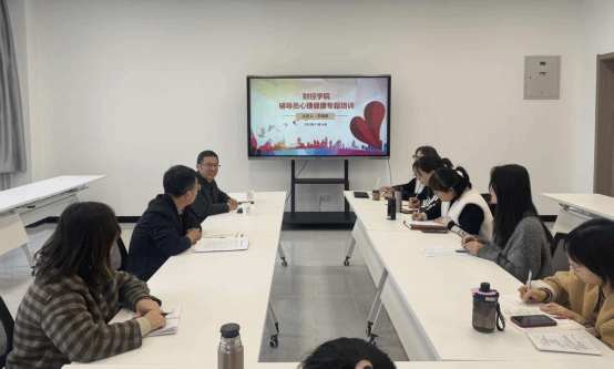 为进一步提升辅导员心理育人能力,强化队伍专业素质建设,推动学生思想政治教育体系不断完善。2025年11月14日下午,财经学院举办辅导员系列培训之“辅导员心理健康教育与辅导能力提升专题培训”。本次培训特邀咸阳职业技术学院学生处学生健康发展研究中心主任苏晓奇主讲,财经学院党总支书记刘健、学发办主任王莹和全体辅导员参加。