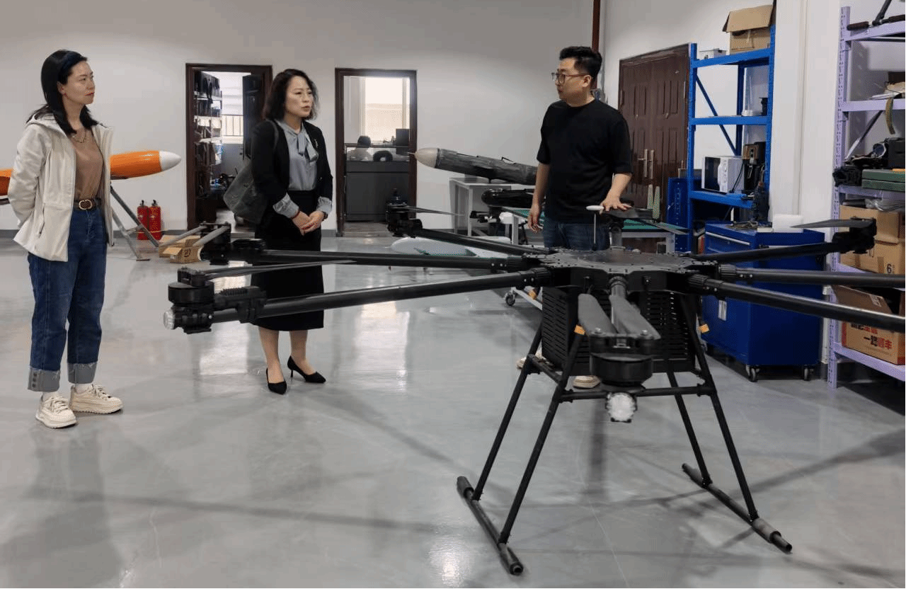 调研团队实地参观了企业研发中心、无人机生产车间及低空物流调度中心,观摩无人机调试,了解企业核心技术与低空经济产业发展趋势,精准把握新业态人才能力要求。